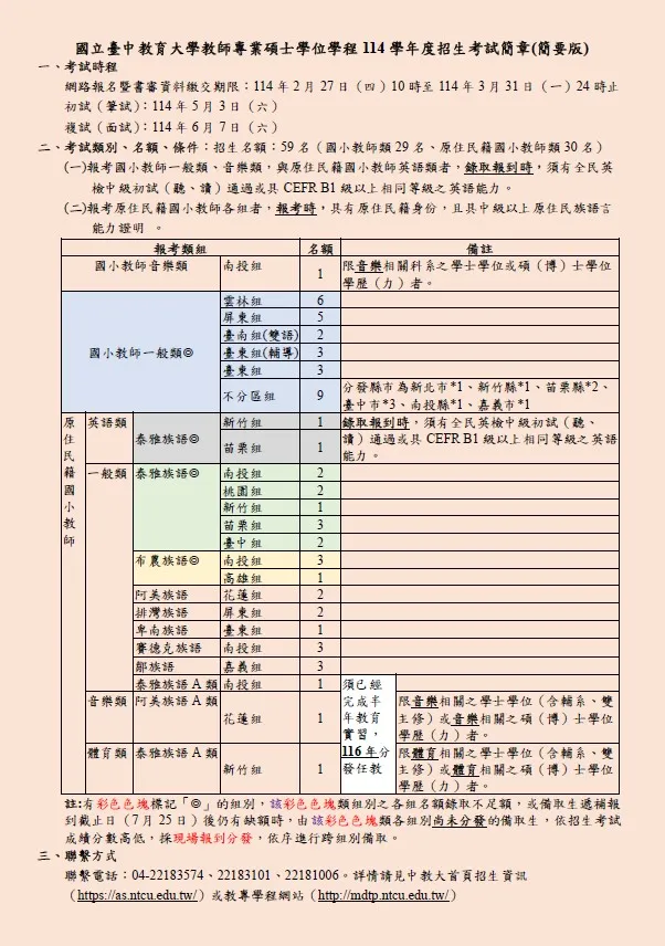 台中教育大學開始進行114年公費師資生招生了,招考59名(一般類29名、原民類30名),報名期間為2月27日至3月31日。